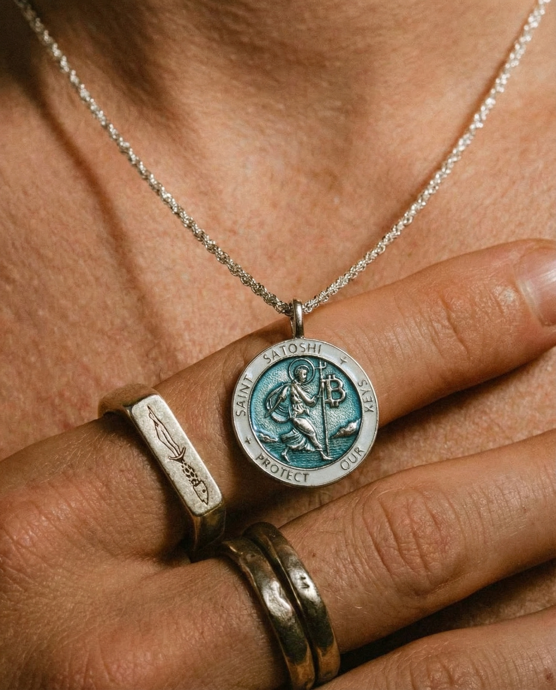 Saint Satoshi Pendant — Tiffany Blue Edition