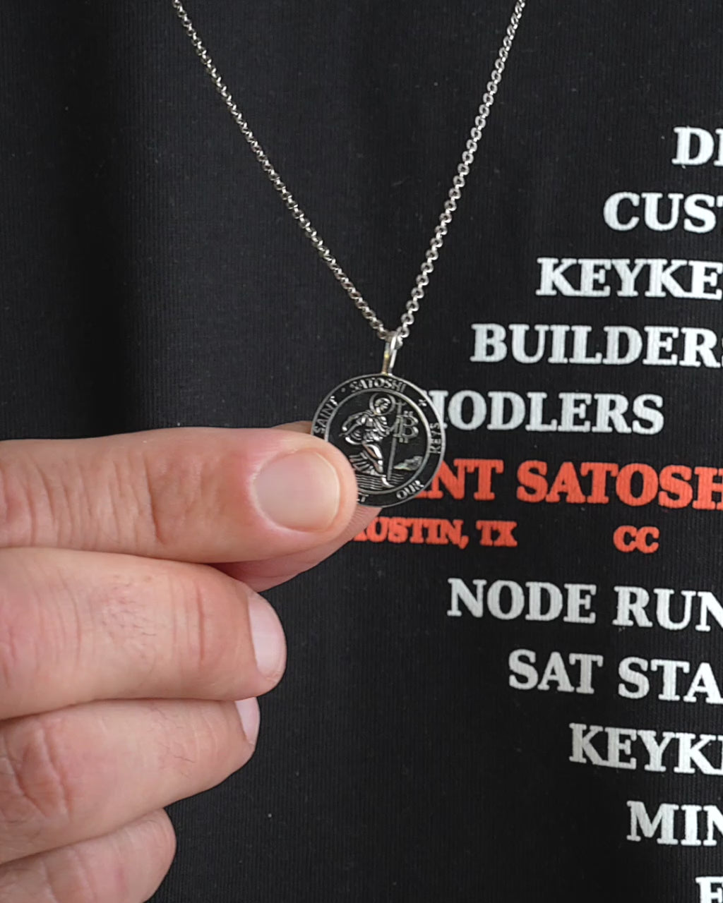This is the shadow-side of belief. The Obsidian Edition of the Saint Satoshi Pendant takes the original design and renders it in a deep blackened silver finish—bold, minimal, and built to endure.